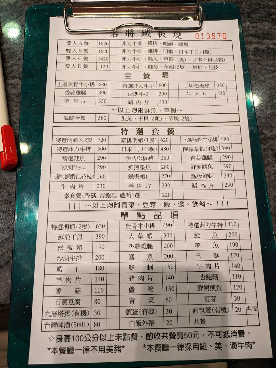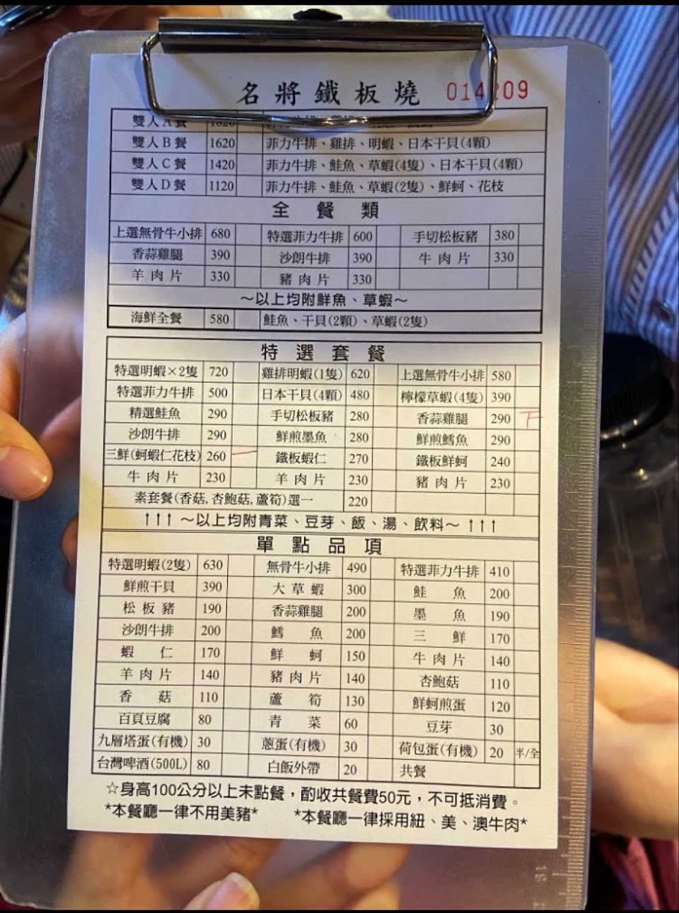 2024最新在地推薦餐廳的菜單_名將鐵板燒的菜單、圖片