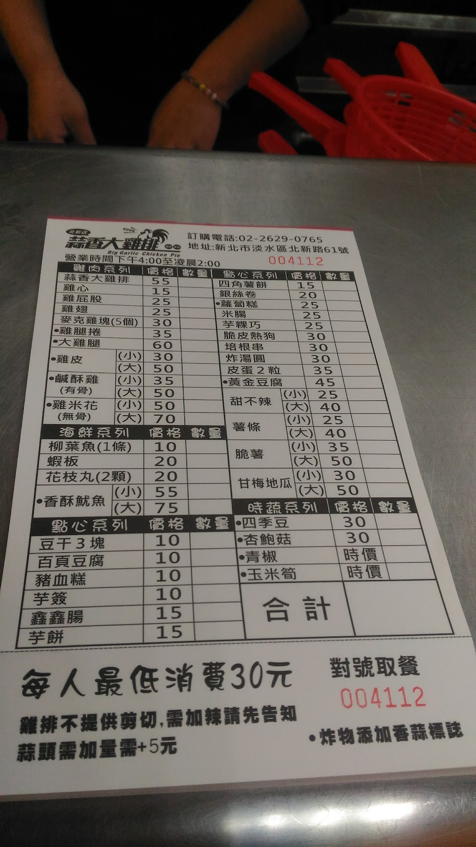 2024最新在地推薦餐廳的菜單_淡水蒜香大雞排-北新店的菜單、圖片