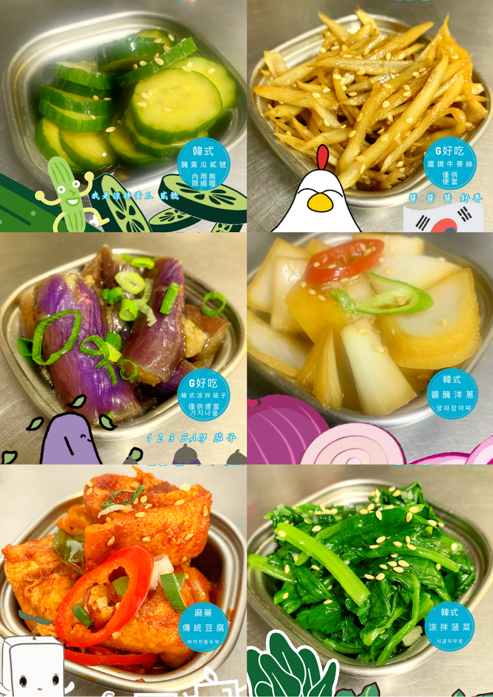 蒜辣醬在菜單上備註是中辣,平常愛吃辣的我覺得介於小辣至中辣,很配撒了海苔的米飯,米飯溫溫的,炸雞的溫度與口感即使是外送依然酥脆,原味雞翅意外的也很配飯,每樣小菜的口味都很平衡整個便當,感受得到用心,還有好多想嘗試的品項,可惜不能單點燒肉,下次試試也好囉!