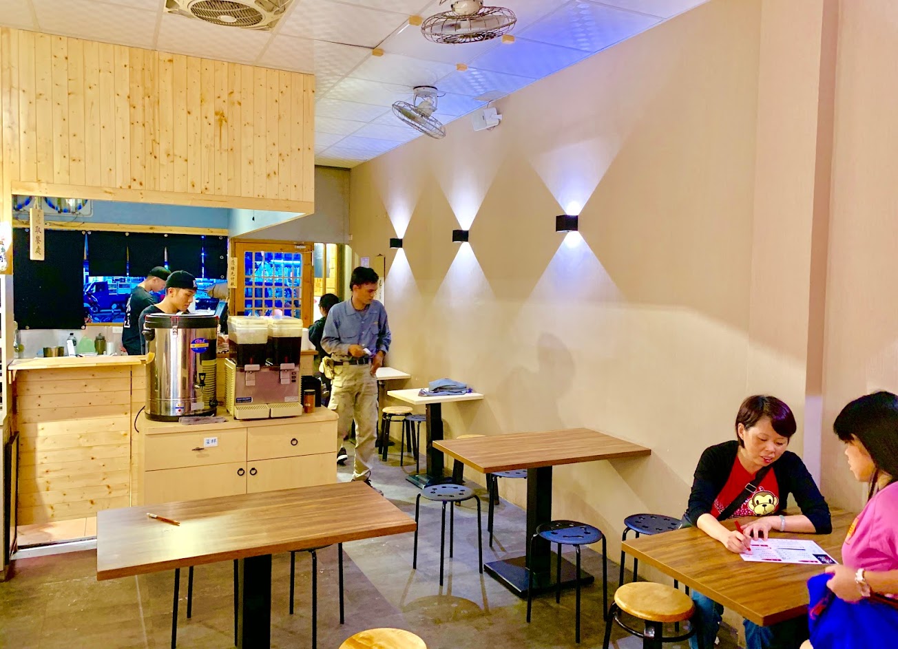 半自助流程:進店拿菜單點餐、付帳拿收據(上面會註明號碼)、自助區拿餐具到座位等、叫號取餐開動、吃飽把餐盤拿到回收區。一回生,二回熟,輕鬆上手。