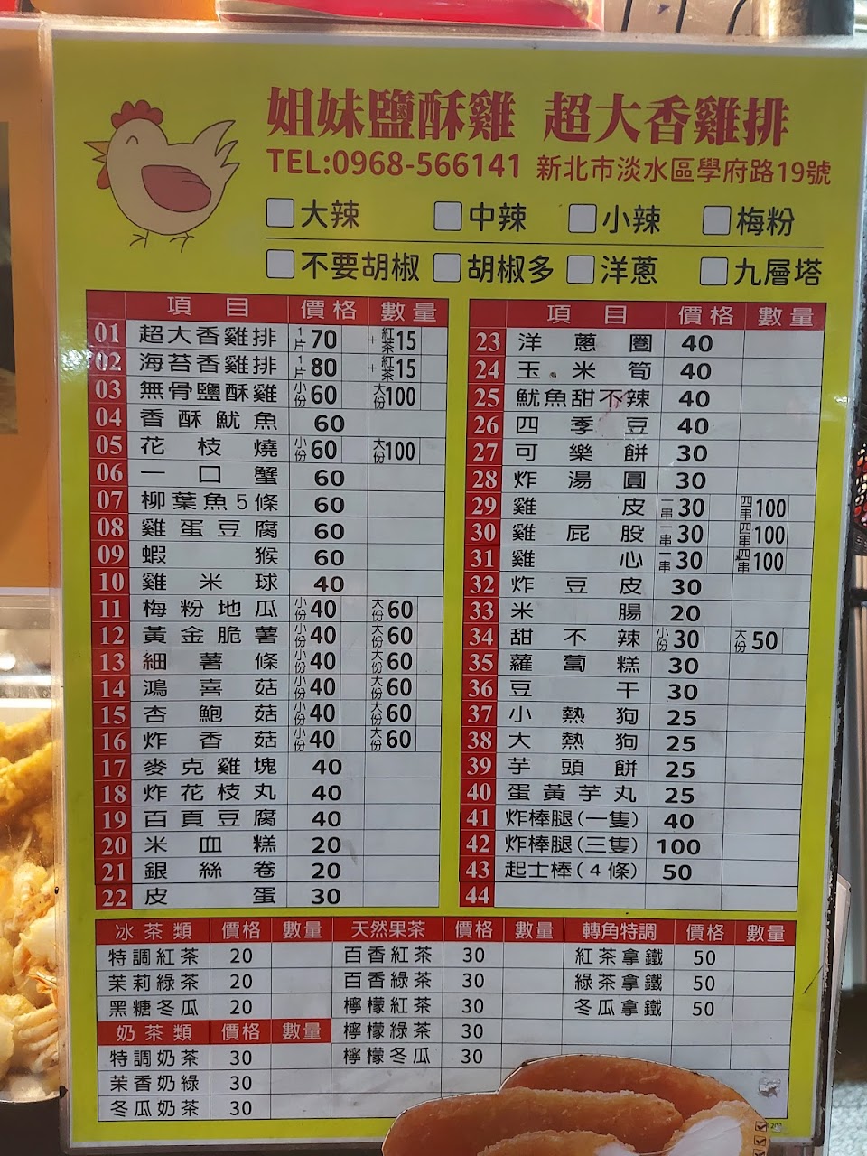 2024最新在地推薦餐廳的菜單_姐妹鹹酥雞 轉角紅茶冰的菜單、圖片