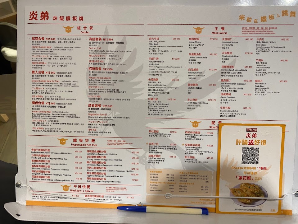 2024最新在地推薦餐廳的菜單_炎弟炒飯鐵板燒 – 公館店的菜單、圖片