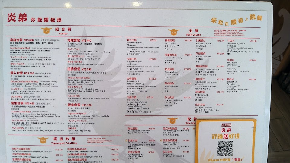 很乾淨時尚的鐵板燒店,服務店員態度也都棒棒,聽口音應該是來自越南;自助式的海帶湯豆腐湯和仙草都很好喝、白飯也是無限吃;當天點了沙茶羊肉鐵板炒飯和情侶合餐,吃得非常飽,還加點皮蛋香菜蛋捲,很新鮮的口感!如此好店沒有人來評價好可惜,我來當第一個,希望大家多多支持!