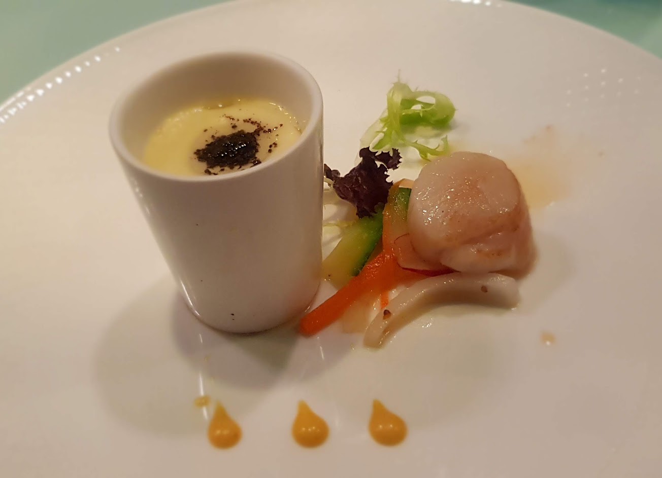 接著是松露蒸蛋及海鮮,蒸蛋搭配口感滑嫩入口即化搭配松露特有的香氣很難用言語形容,海鮮是淡菜,就沒什麼別的感覺,