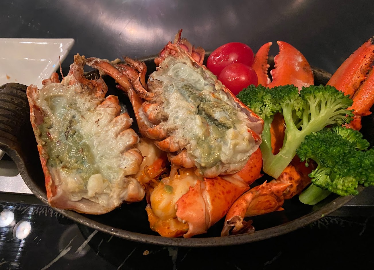 我們三個點了兩人套餐、外加一個和牛夢幻套餐 店員說和牛套餐可以加188$換半隻龍蝦 , 我們也就照點 因為母親生日 所以想說那就換龍蝦 ,然後鹹食全部吃完之後看到旁邊人陸續離開、主廚也不見了, 雖然龍蝦還沒來,但因為天氣很冷 可是桌邊水和氣泡果汁都是冰冷 轉身我是先詢問一個女店員想說菜單上剛才點的餐 飲料可以來了(兩壺熱水果茶和奶茶) 她的反應很詭異 是愣住 然後問你們要換位子了嗎? 我聽不懂 …為什麼坐的好好要換位子? 而且我們東西根本還沒吃完… 然後她又再問一次 要換嗎 我就說飲料不能先上嗎?…. 然後她直接轉身跟同事講話 又過來說 因為甜點要換到外面位子吃
