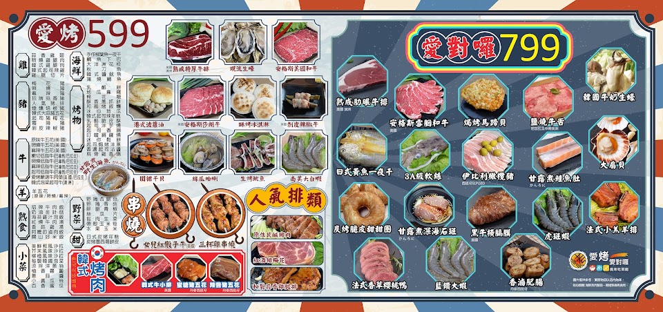 今天全家大小一起共享快樂的烤肉趣,店名好可愛,叫愛烤愛對囉! 我們來到了淡水店,餐點新鮮外,用餐環境很舒適,最值得推薦的是,可愛的服務人員臨桌代烤,技術好到令我們啞然無聲! 下次一定要指定「葉羽芳」本人服務,太棒了!