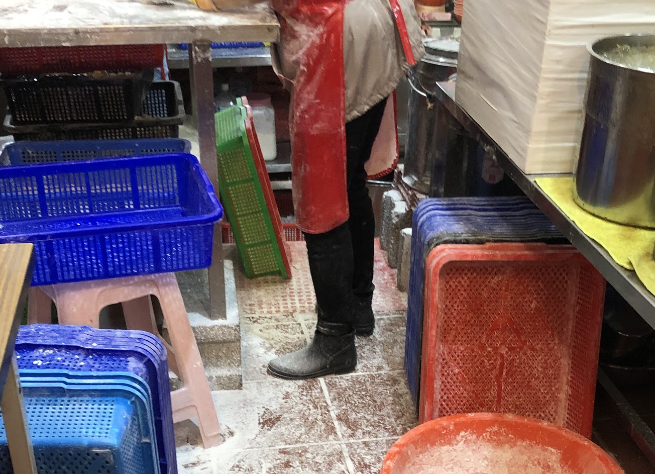 小孩很乖的看芋圓製作過程,工作人員大喊走開,真的是態度惡劣的店