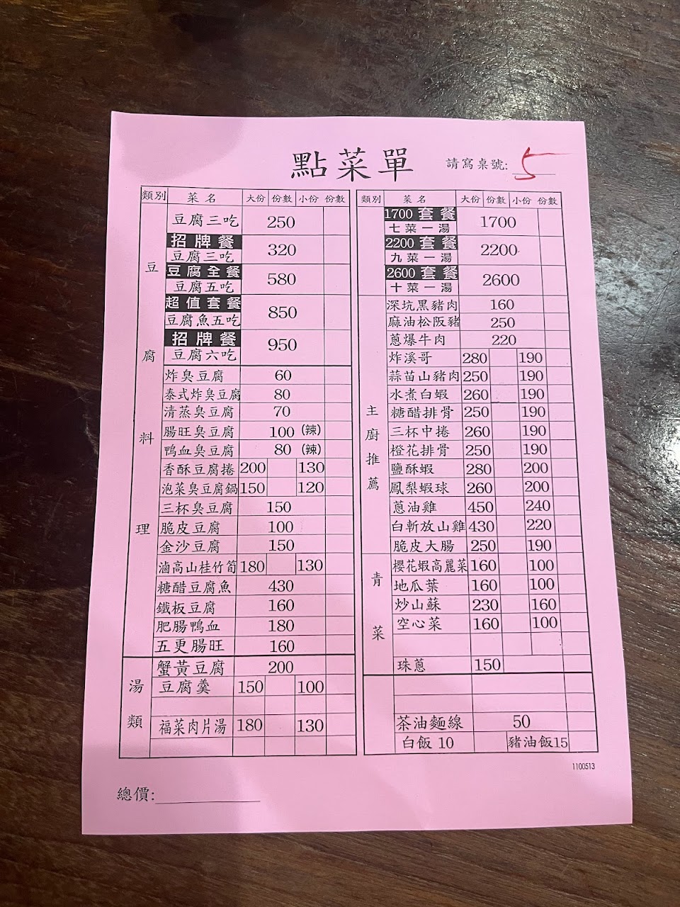 餐點:5