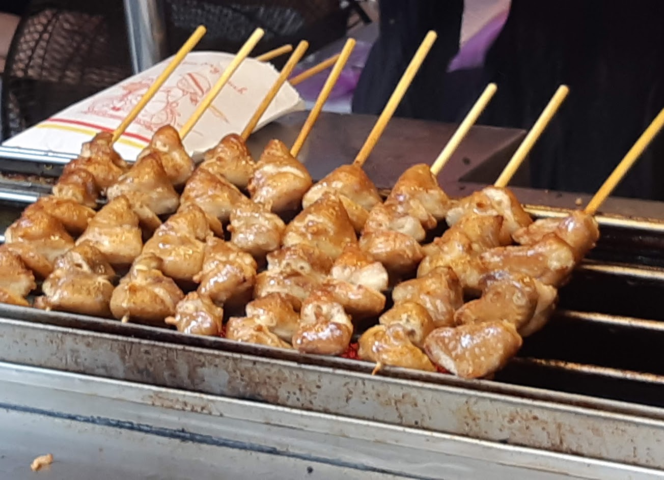 雞屁股太大沒烤很酥的話就不好吃,我當天吃起來覺得沒有外面碳烤的好吃,他們雖然雞屁股很大但不便宜四顆40元,經常就是大排長龍,他們烤的速度算快因為後面有隱藏的烤爐加速,想來可能來老街不吃餐廳的就會來排路邊攤美食吧!