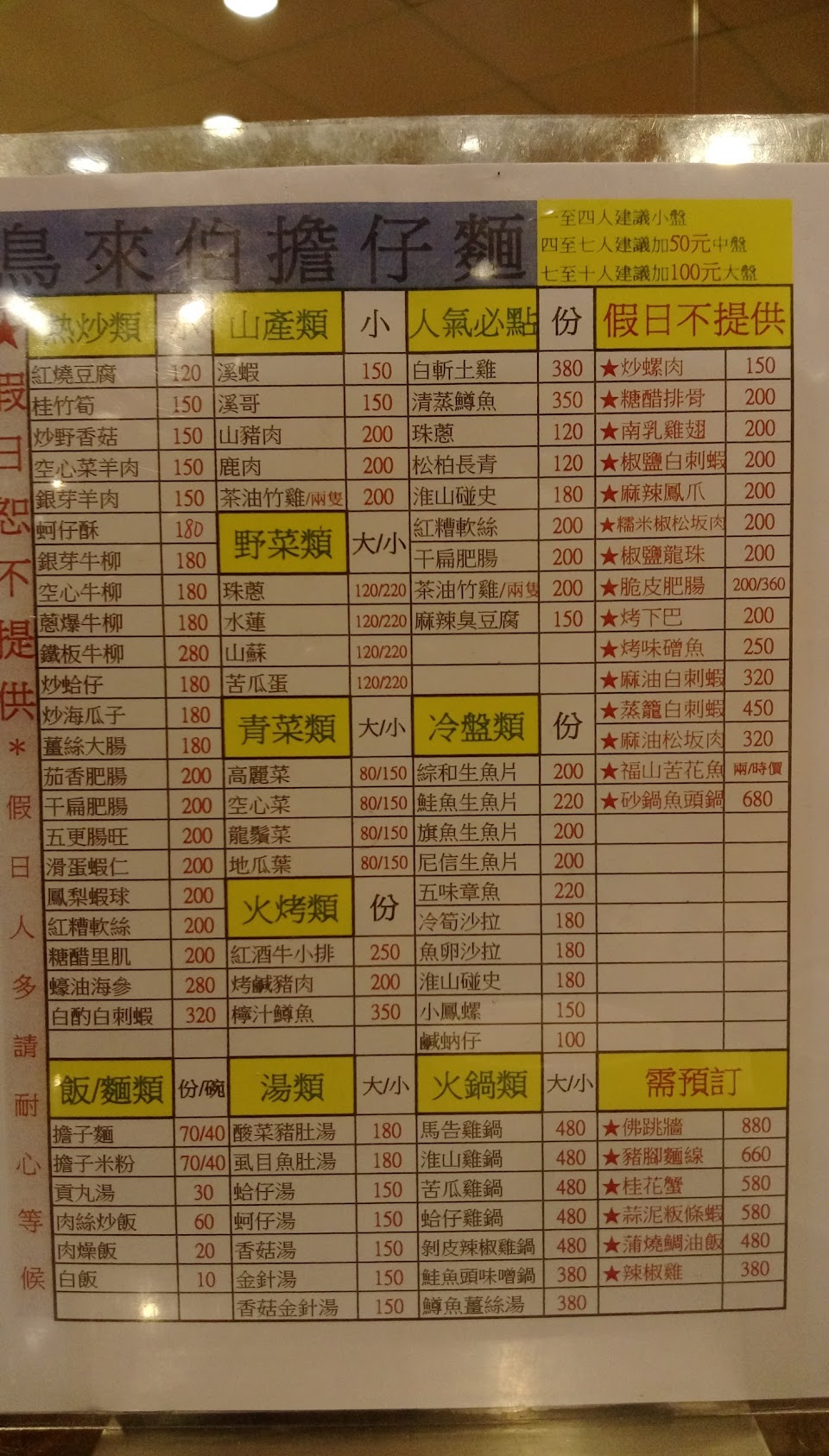 2024最新在地推薦餐廳的菜單_鳥來伯擔仔麵的菜單、圖片