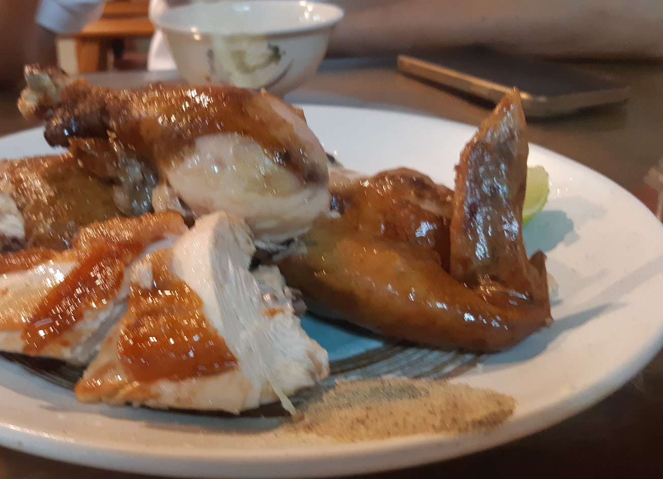烤雞有點軟爛,感覺像Costco的烤雞,炒麵,山豬肉,青菜和蛤蜊湯等口味還可以,只是回家三個人都拉肚子…