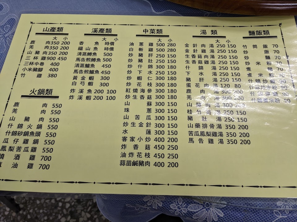 溪蝦最好吃,珠蔥不錯,過貓也不錯,桂竹筍稍鹹,山豬肉走沙茶風真的吃不懂