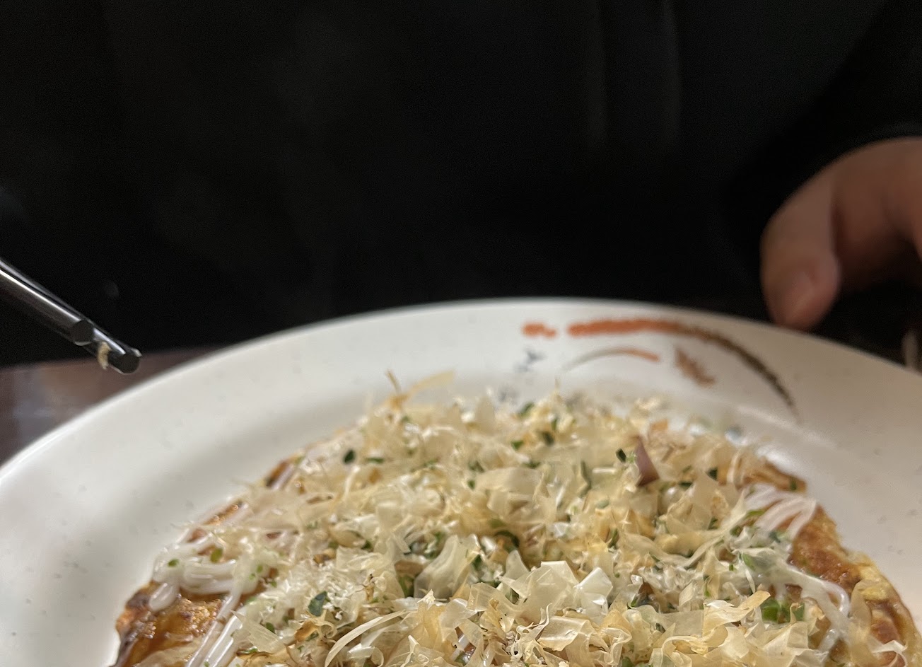 看著客人絡繹不絕,經過長時間等待,好久沒出國的我們帶著滿滿的期待,在吃到的那一刻真的瞬間面面相覷。完全無法用「道不道地」來評價,因為連基本的美味我都感受不到--大阪燒無論粉漿比例、蔬菜肉片比例、甚至連基本的大阪燒醬和Q比放的量都NG;日式炒麵也是一樣,不到難吃,但就是很~普通,而且想要多一點大阪燒醬或沙拉醬都不行,連最後稍微想要讓這些食物好吃點的機會都沒有,只能說是家成本估算相當精準的店。(攤手)