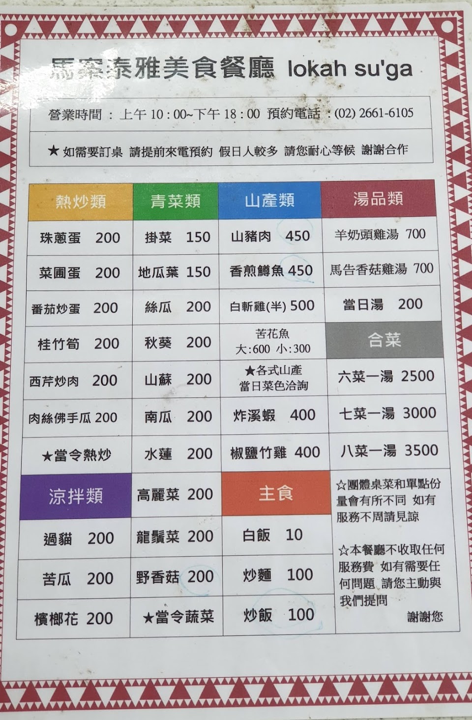 2024最新在地推薦餐廳的菜單_馬岸泰雅美食餐廳的菜單、圖片