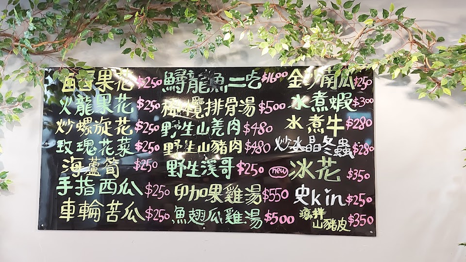 因為門口稀奇古怪的野菜而走進店家裡,冷氣開的很強,環境乾淨吃起來蠻舒服的,難得看到特別的百香果花,沒想到口感清脆好吃!推薦喔!
