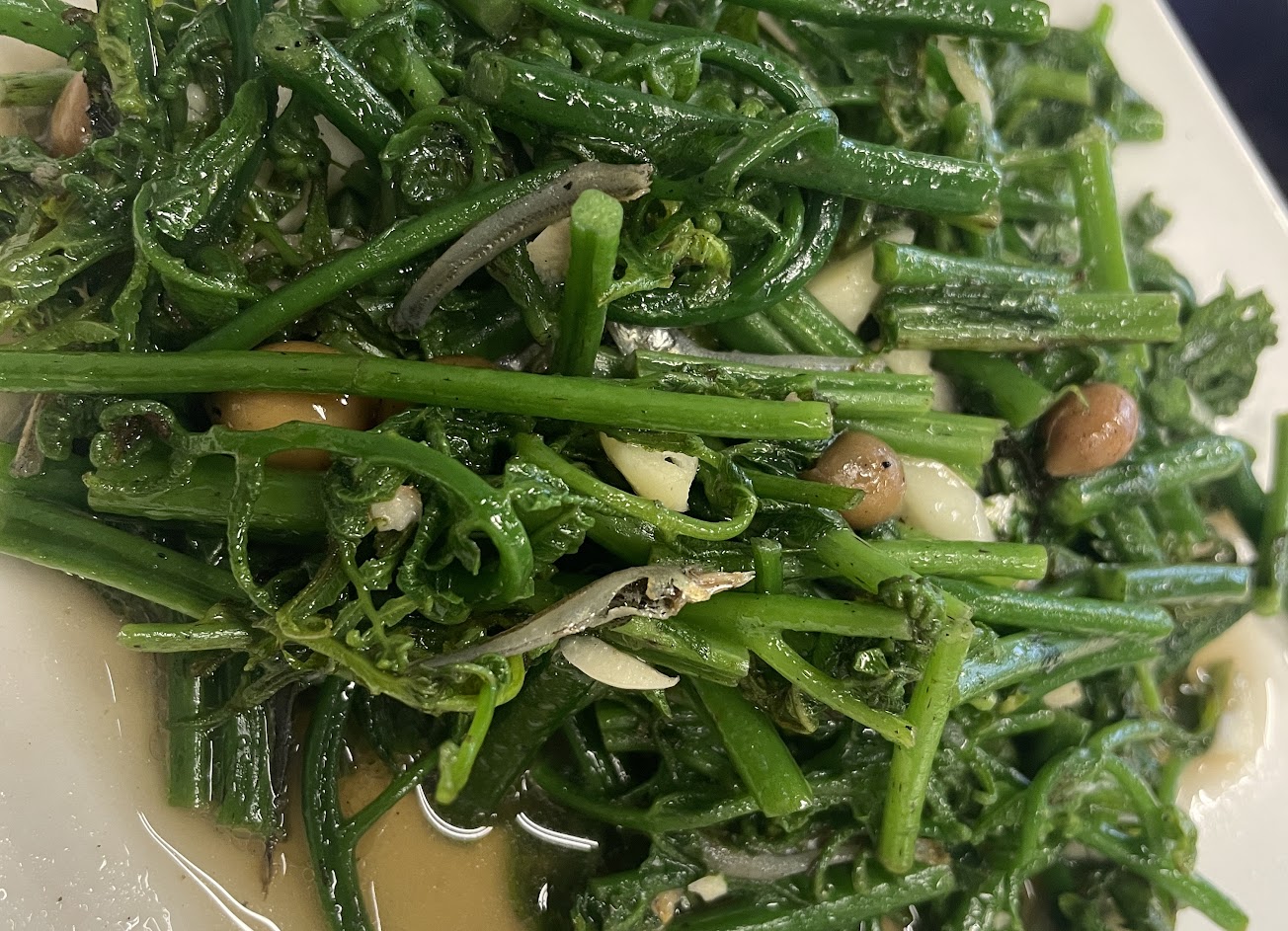 翠綠的部份口感類似嫩筍,但整盤有將近一半偏黃,不僅較為軟爛且明顯帶有酸氣,不確定是否存放過久造成氣味不佳⋯