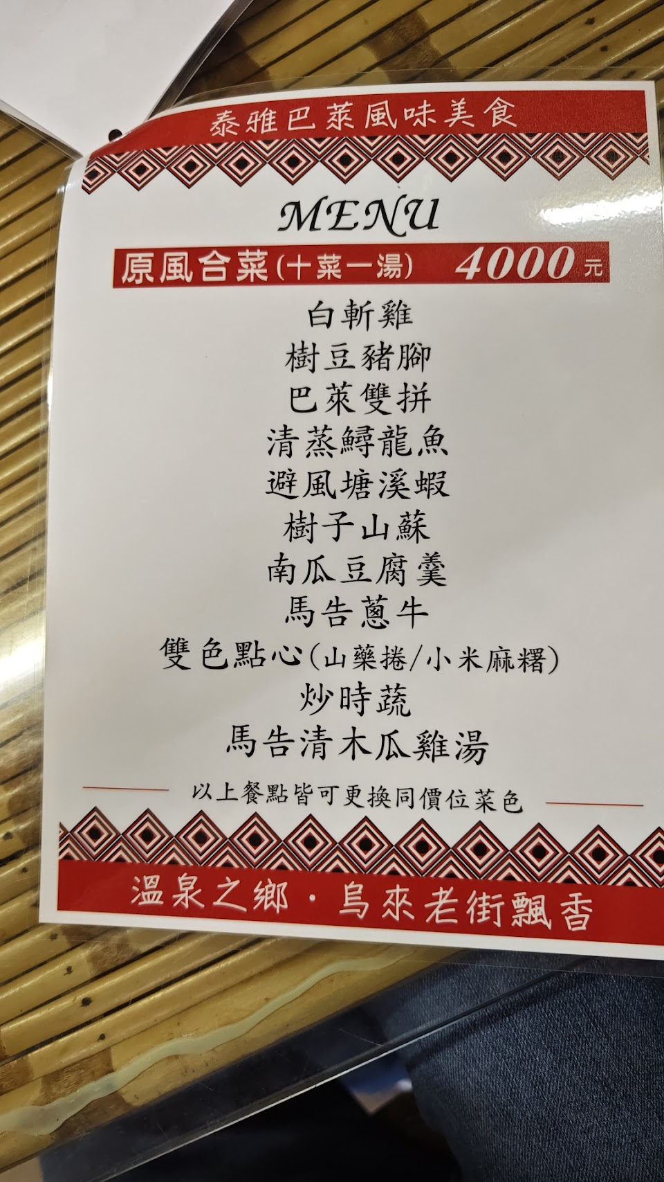 2024最新在地推薦餐廳的菜單_泰雅巴萊原住民美食店的菜單、圖片