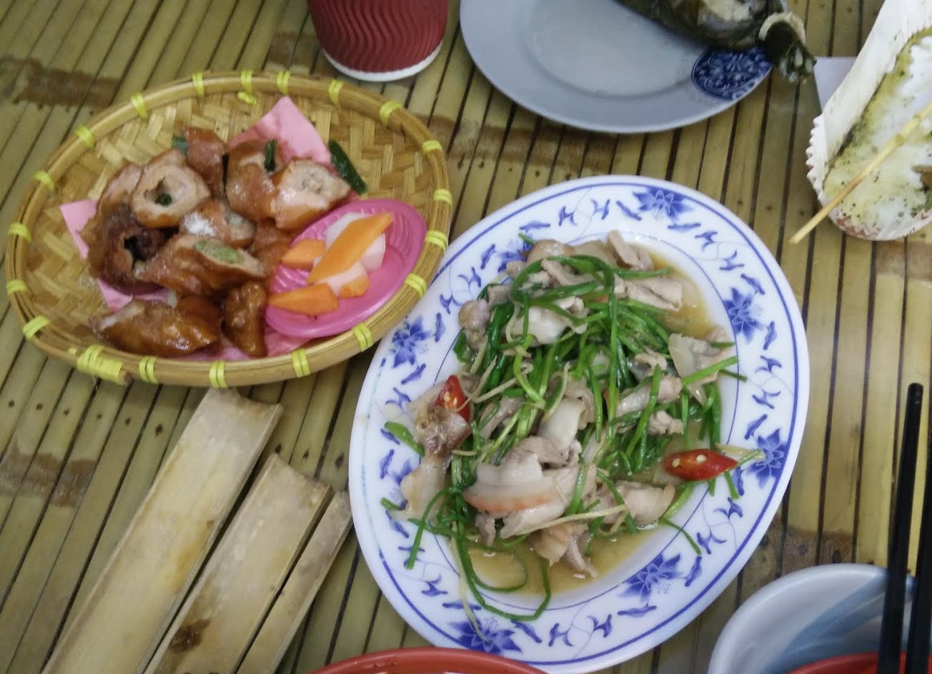 炒麵好吃!珠蔥也好吃!竹筒飯跟月桃飯沒啥味道,吃到後來都沾炒菜的湯汁在吃…