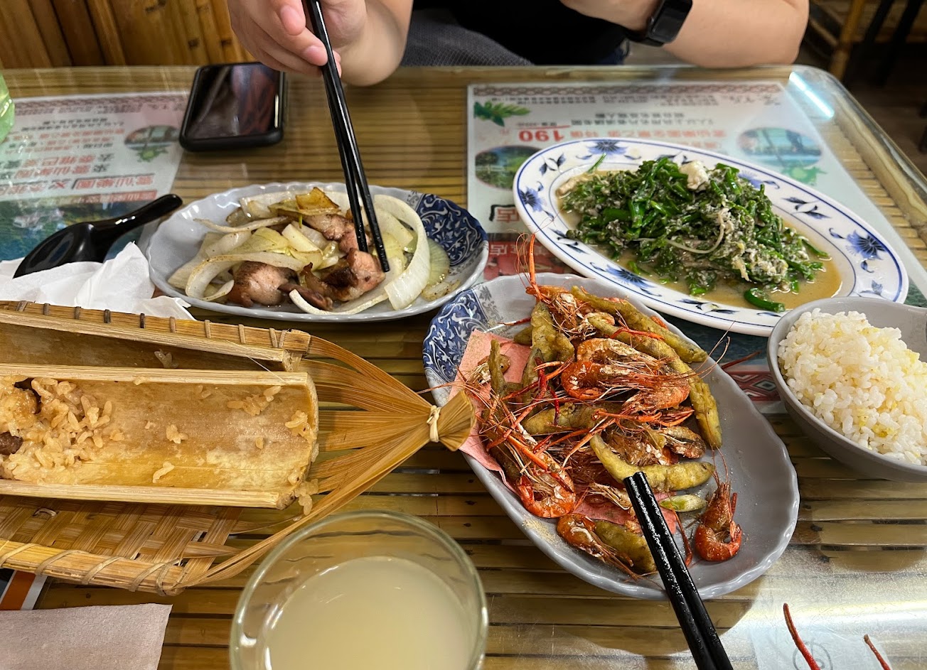 最愛吃炒山蘇,這家的吃起來脆又嫩,炸溪魚蝦脆脆好香酥,原味竹桶飯普通,點了青木瓜雞肉湯喝起來清爽但普通就是了。價位在觀光區算很平價,非常讚
