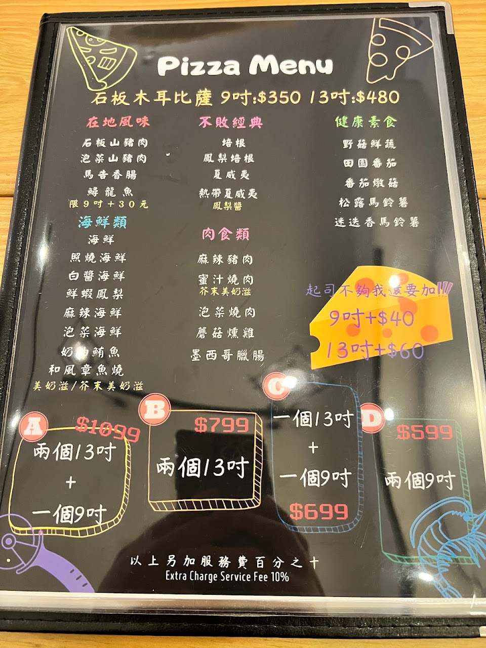 老闆細心推薦特色美食,我們一家三口點了山豬肉Pizza跟海鮮Pizza都很好吃
