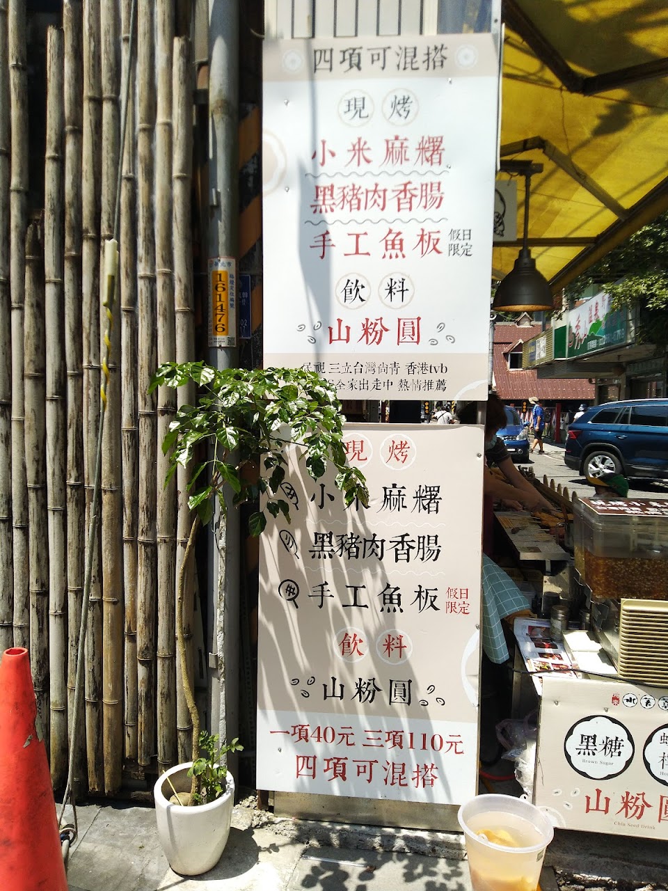 Simply delicious! They have traditional Taiwanese sausage and mochi in many different flavors. I really like the one with condensed milk and red beans. They also sell cute little knickknacks on the side. First store going down Wulai Old Street. Must visit!