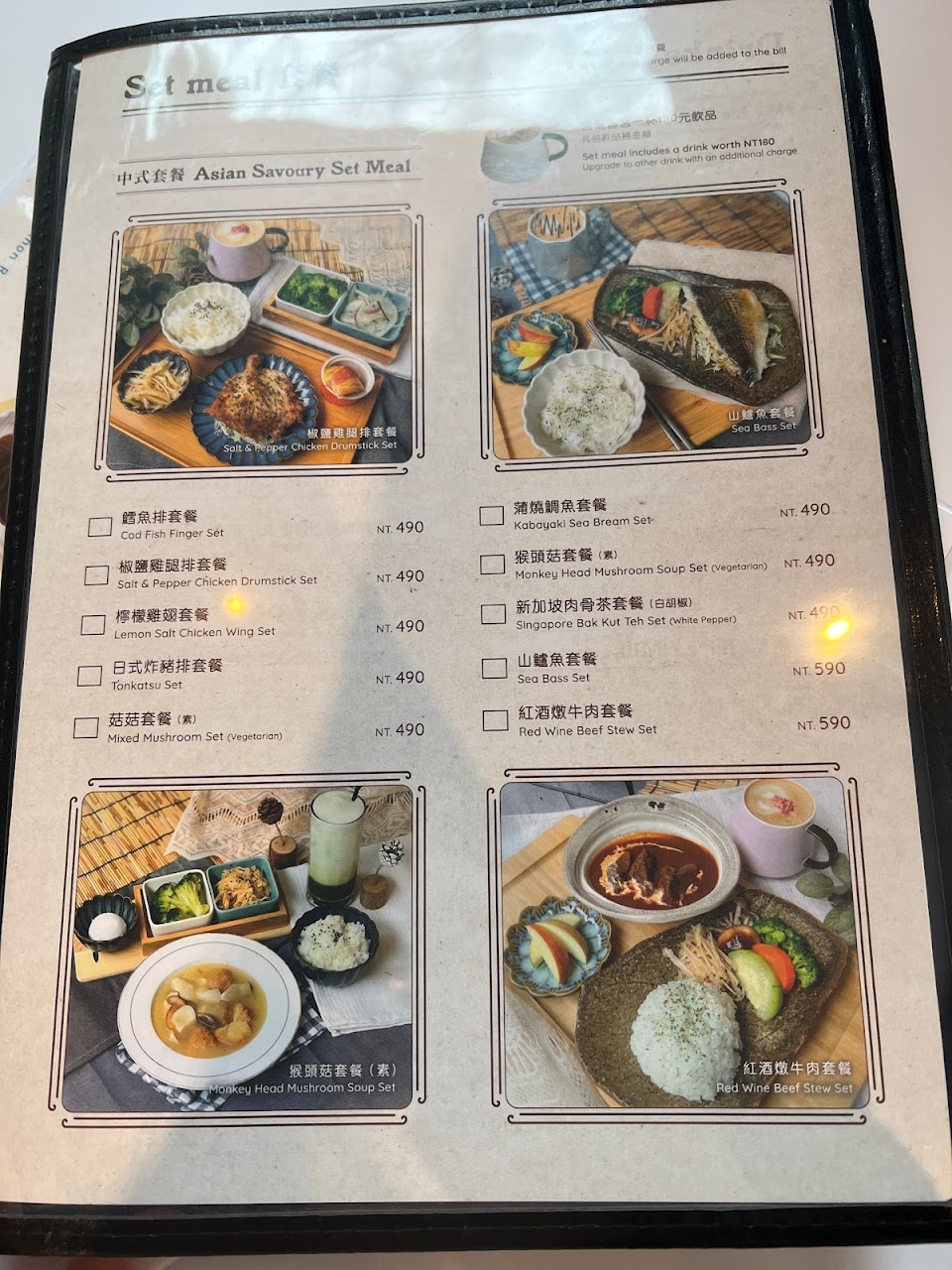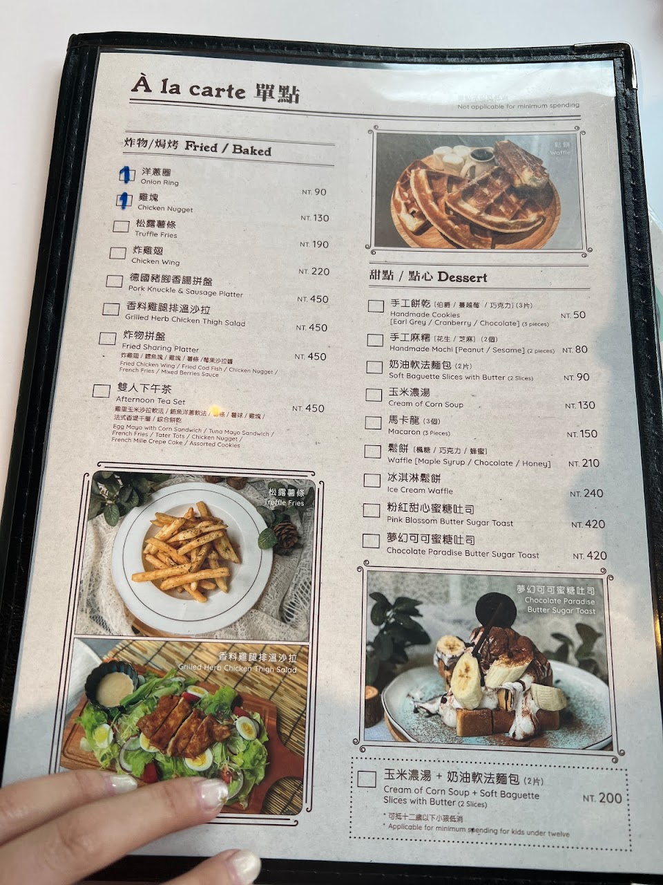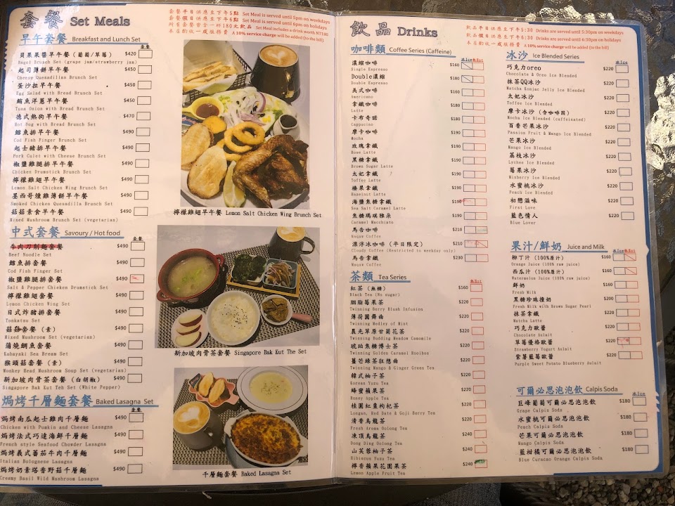 但餐點太貴,每人要求低消一杯飲料(單點餐點不算低消),再加一成服務費(從頭到尾的服務就只有送餐上桌而已),CP值極低,食物中規中矩沒特別出色,鮮奶茶喝起來好奇怪⋯