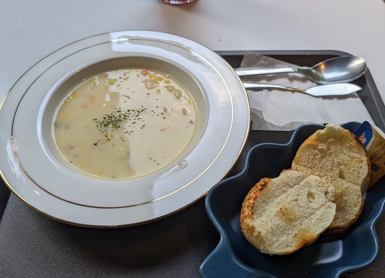 有夠難吃 在外面拍照就好 完全不用走下去噢 湯跟水一樣 餅乾是老人養身餅乾吧