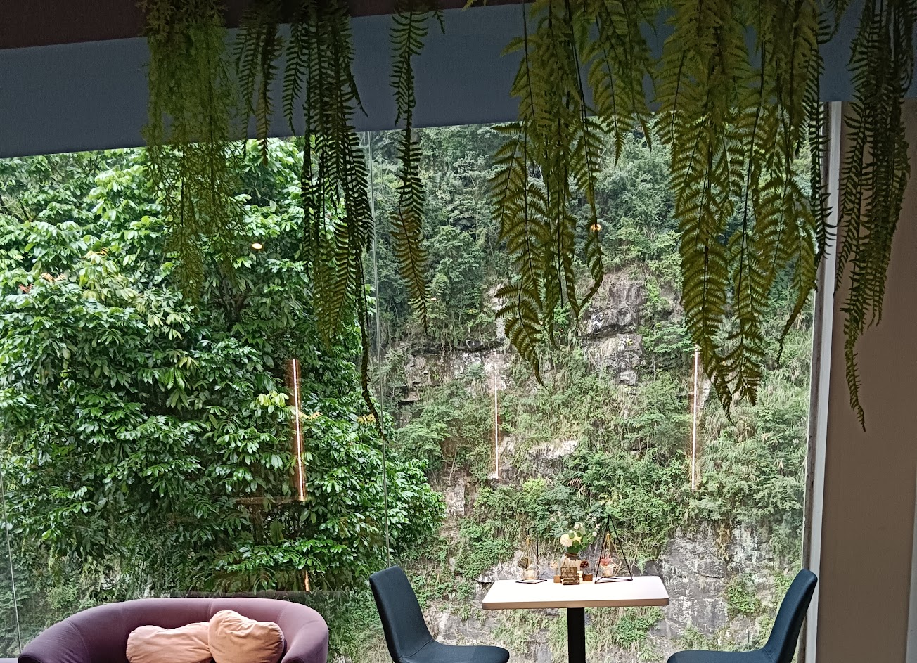 帶有冷氣的餐廳享受美食欣賞瀑布