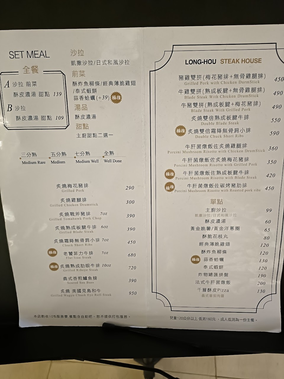 2024最新在地推薦餐廳的菜單_瀧厚炙燒熟成牛排 台北.北車店 (台北牛排推薦)的菜單、圖片