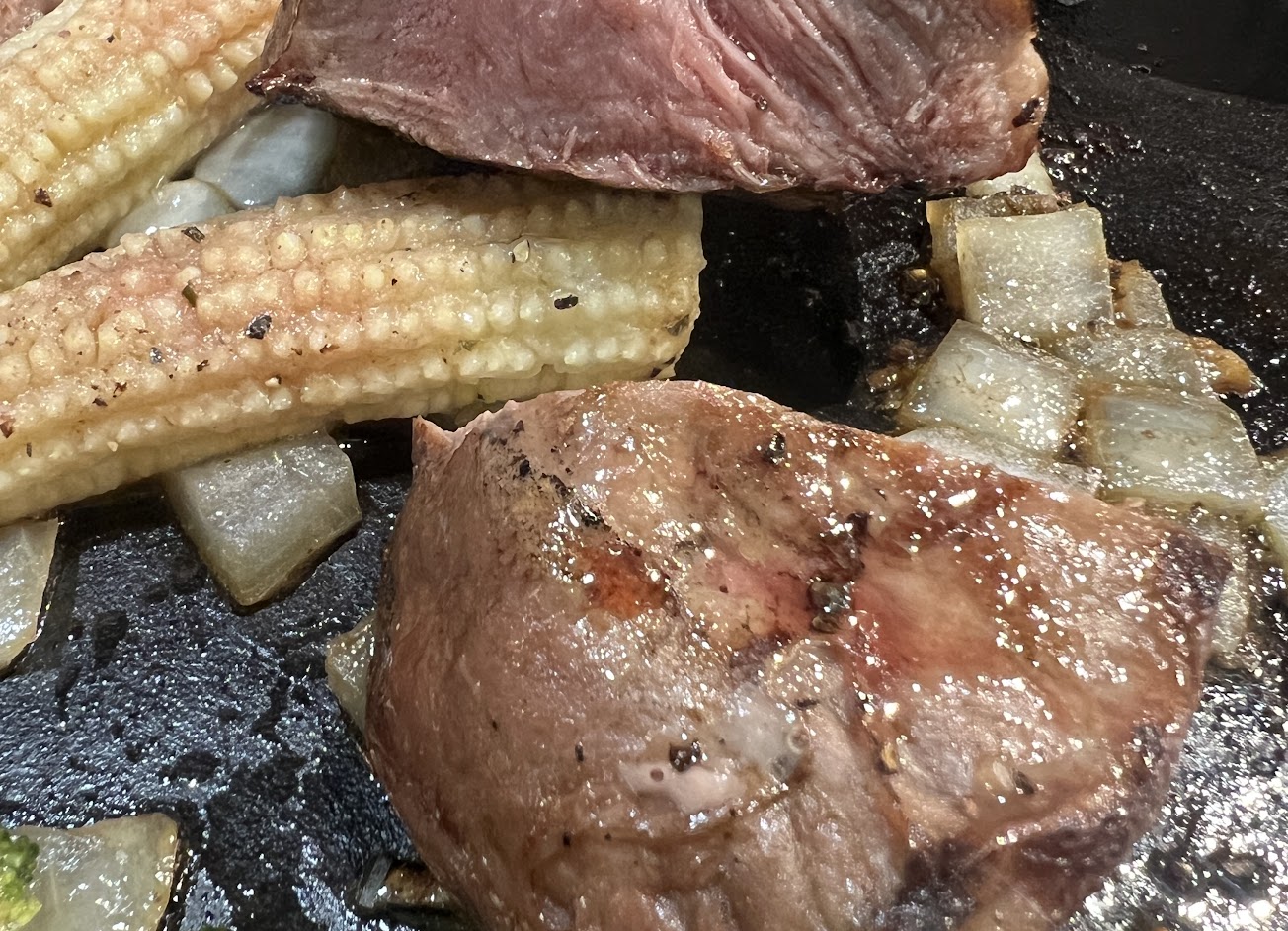 主餐高價的菲力五分熟硬到咬不動,肉香足夠,肉質卻搞得跟全熟一樣,甚至最熱的是鐵板,牛排本人是溫的;肩小排的表現稍佳,但也是外皮過硬,口感不好。