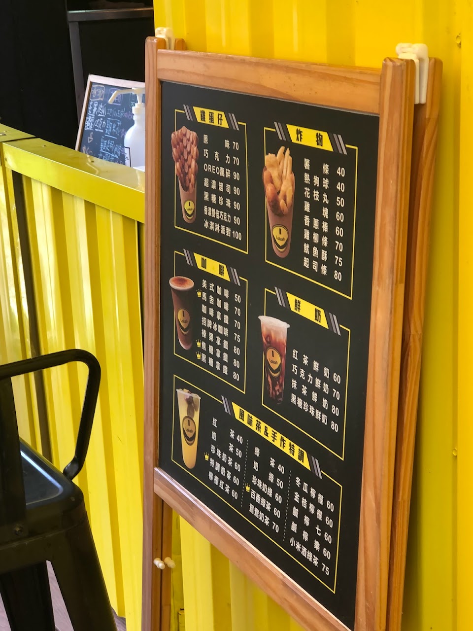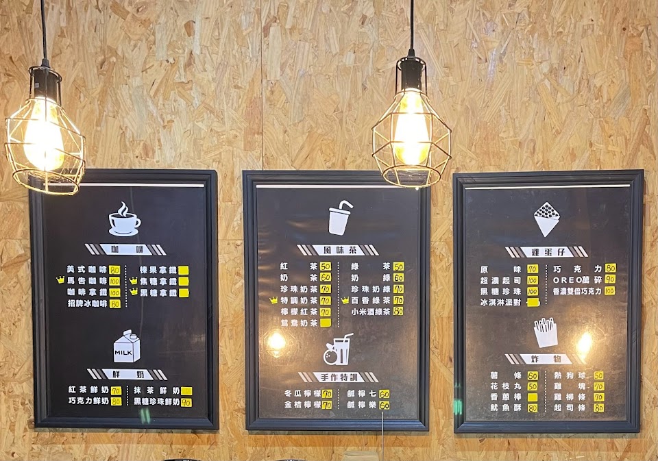 也有賣咖啡和雞蛋仔炸物,點了薯條、起司條、珍珠雞蛋仔好吃咖啡也好喝,外觀招牌特別