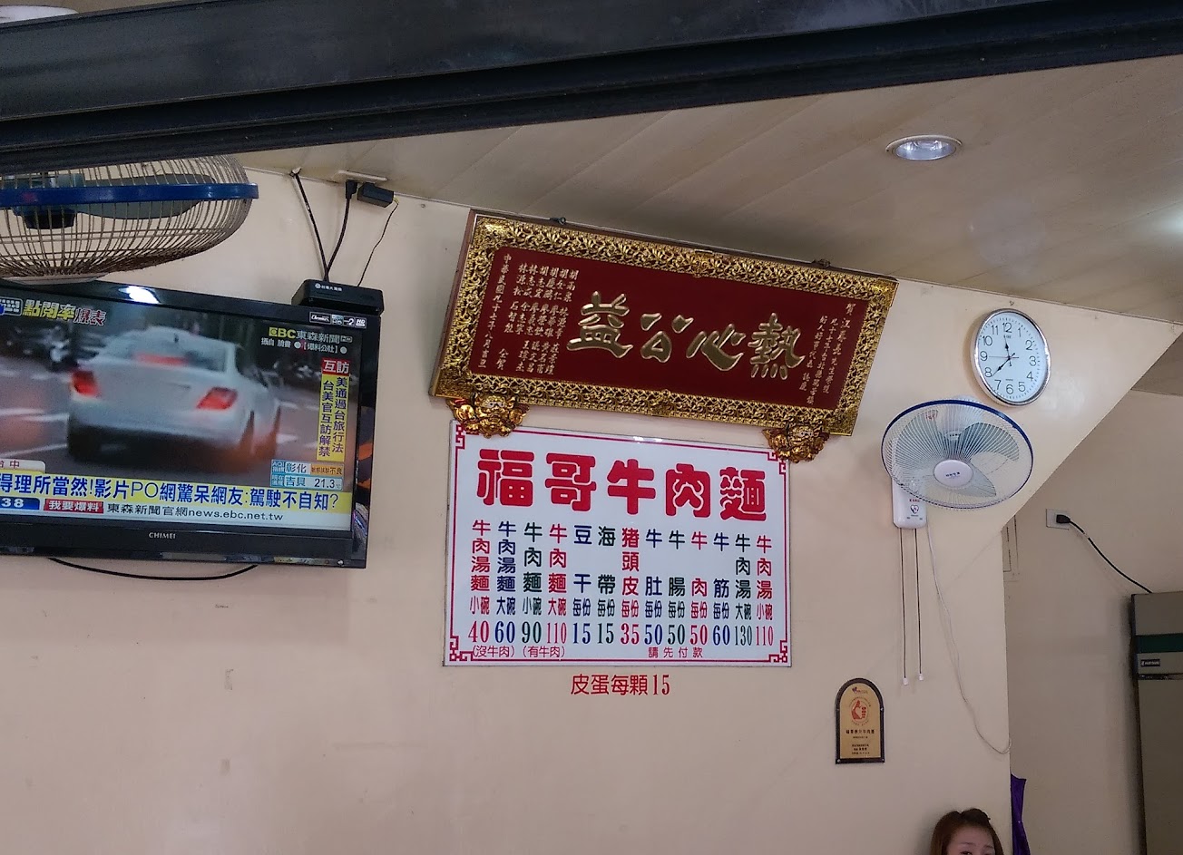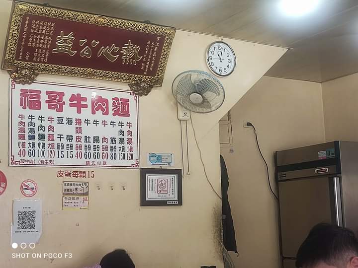 瑞芳地區唯一有名氣的牛肉麵店。地點位居三角窗,價額中等,口味還可以。生意不錯。逢假日也是座無虛席的。