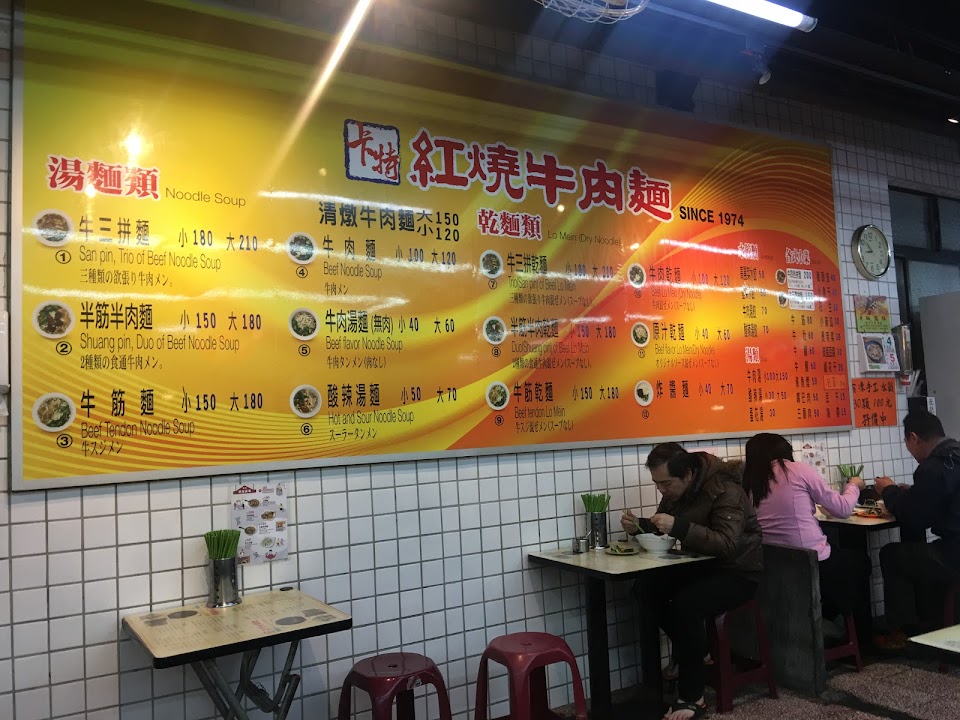 這家最早開在電信局門口,所以以前叫作電信局牛肉麵。後來才改名叫卡特。這幾年湯麵湯的味道沒有以前濃郁了,有點退步。不過建議可以吃他的乾麵,滴一點他的特製辣油。因為還是原汁,所以可以嚐到他最原本的味道。吃的時候建議點一顆皮蛋,一口麵沾著原汁配一口皮蛋,超級搭。