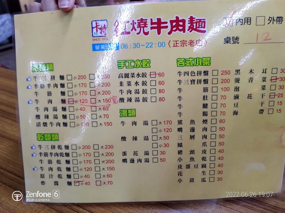 牛肉麵湯汁加水過多已失去原味,比較像是鹹水湯麵?肉質算軟,但無特色,麵和小菜都普通,試吃了2~3次仍如此,不解評價尚可的原因…應該是見仁見智。