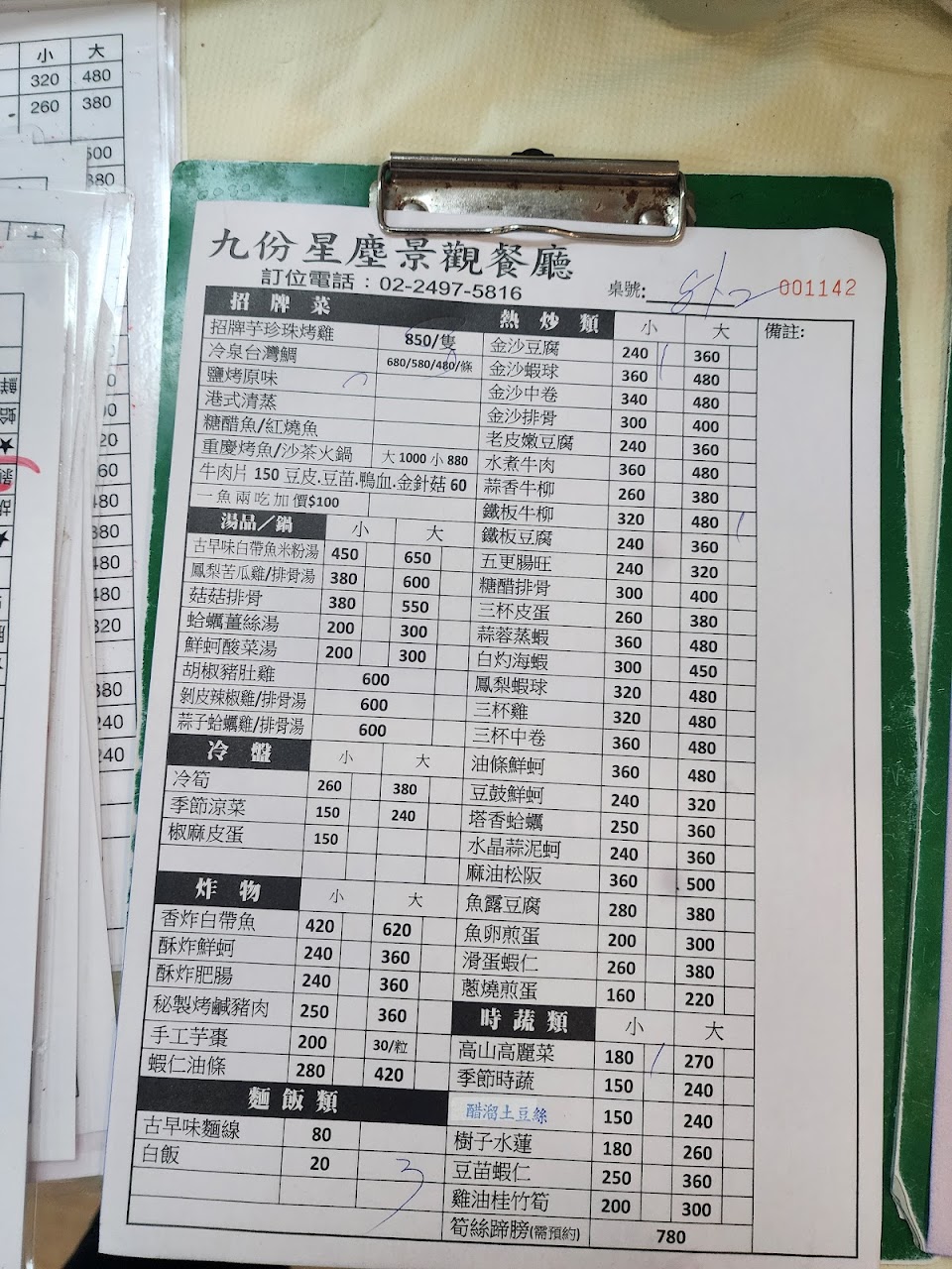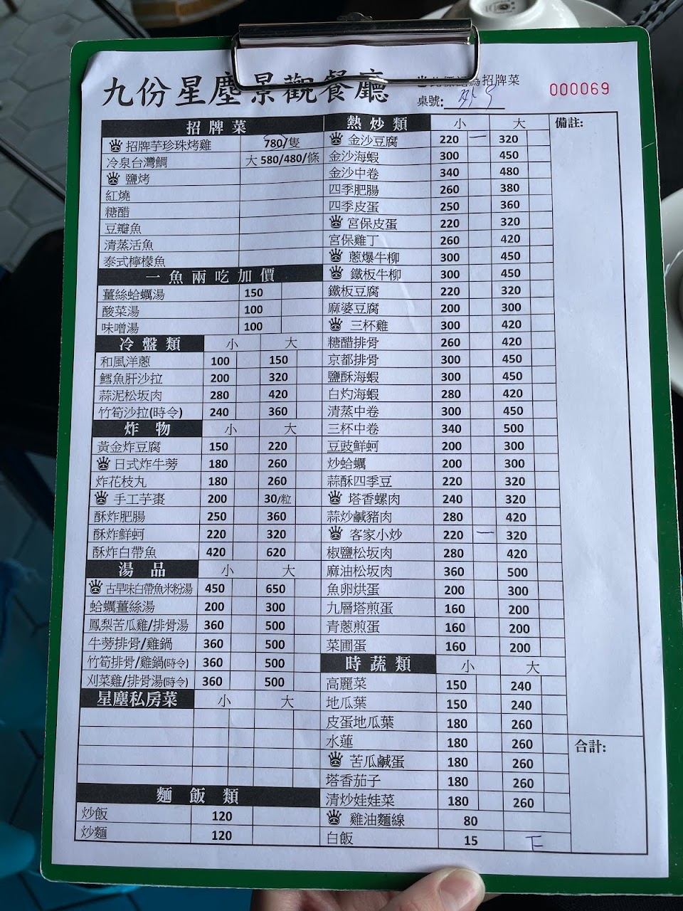 兩人用餐,點$480的魚,ㄧ魚兩吃,煮湯(+150煮蛤蜊湯)和鹽烤,都非常好吃?蒜蓉蝦也好吃,是住在九份用餐不錯的選擇。