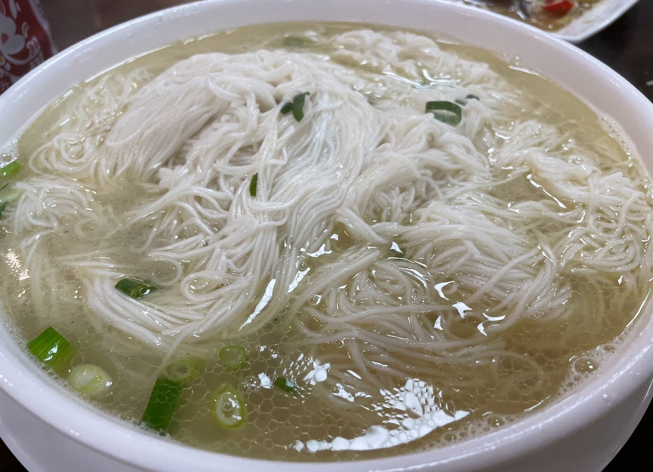 雞油麵線:煮麵水加太少以及沒有沖冷水,導致麵線上桌就糊成一團