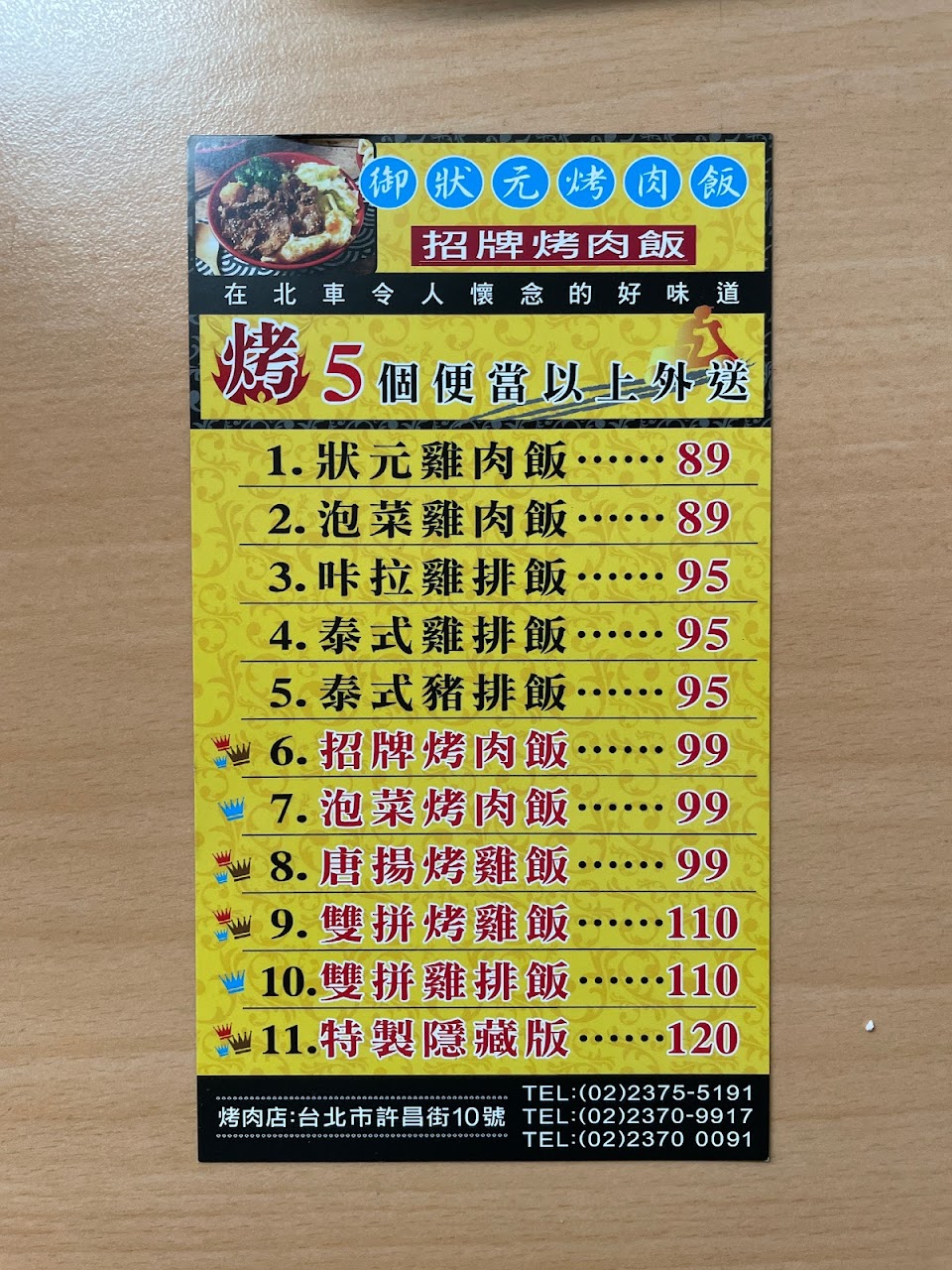 2024最新在地推薦餐廳的菜單_御狀元烤肉飯專賣店的菜單、圖片