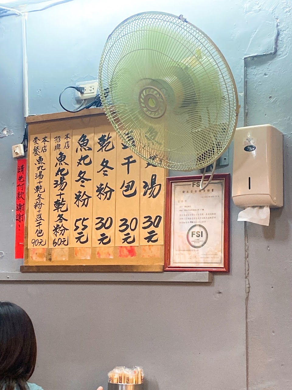 價格便宜,魚丸湯,豆乾包和幹冬粉都是35元,個人覺得豆乾包最好吃,魚丸湯魚丸一般,但湯頭鮮美。吃的人好多,店家靠近入口的位置。