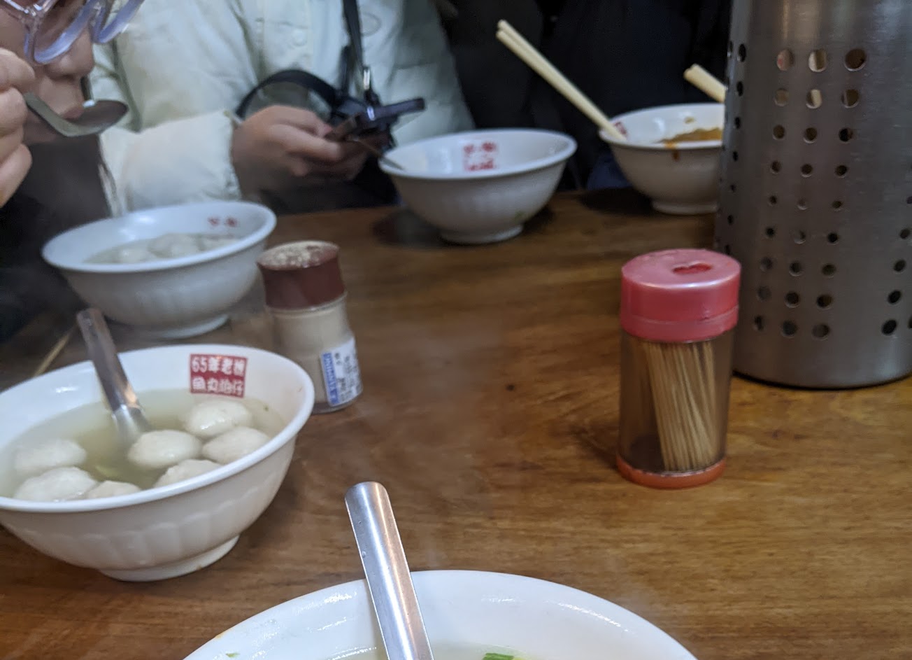 魚丸湯清甜,口味尚可,但沒有值得到需要犧牲時間和用餐感受去吃。