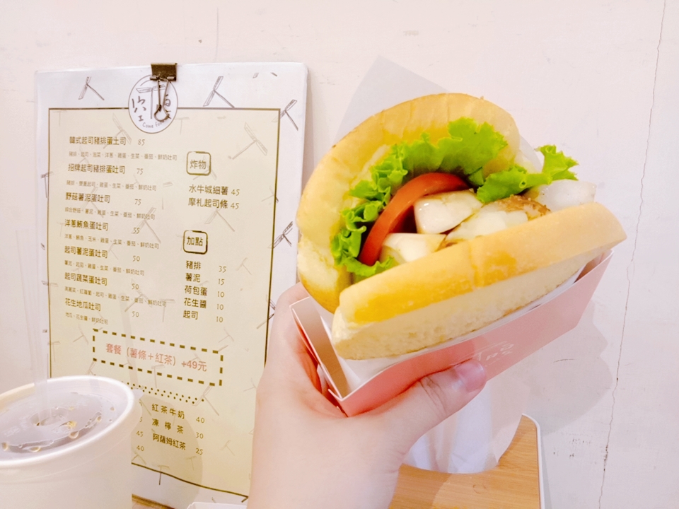 味道均衡,醬料與食材味道很平衡,包裝風格像前陣子熱門的韓國吐司,但比它更大,吐司在鐵板上烤過很香,生菜新鮮也不是普通的美生菜。吃完滿有飽足感,每一口都吃得到料。紅茶沒有特別印象深刻,還可以。建議提前預訂取餐,店內提供些許座位。