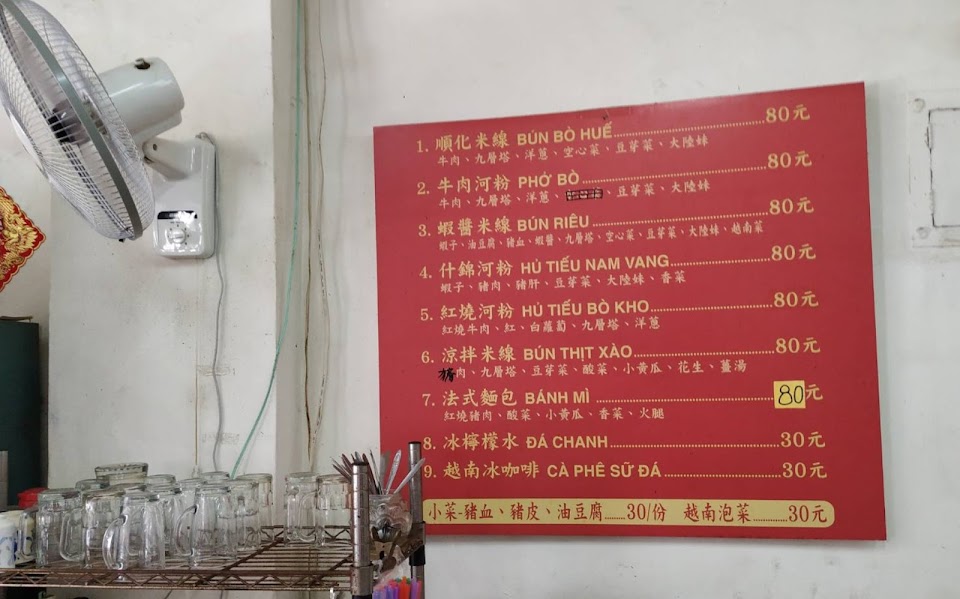 提供多種口味的越南料理,味道濃郁,具有特色。雖然隱身在菜市場裡面,似乎不起眼的小店,還是推薦到訪品嚐!