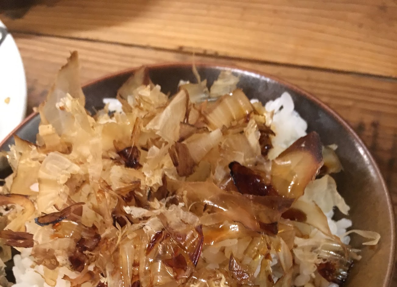 貓飯($30)=白飯+醬油+柴魚片,單吃會有點鹹,要拌一下或加其他配菜