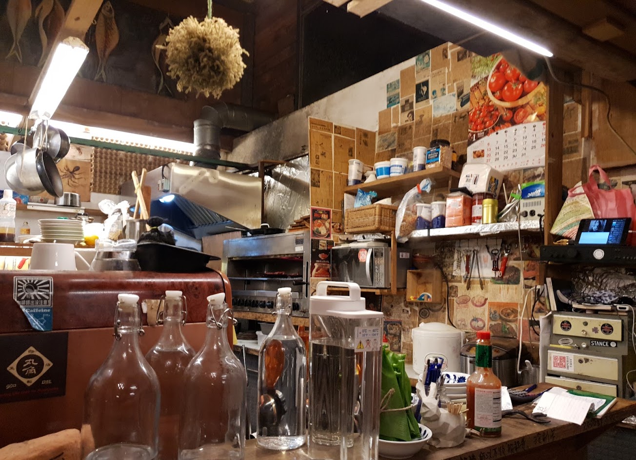 門簾掀起後,映入眼簾的是熱鬧溫暖的櫃檯及廚房區,