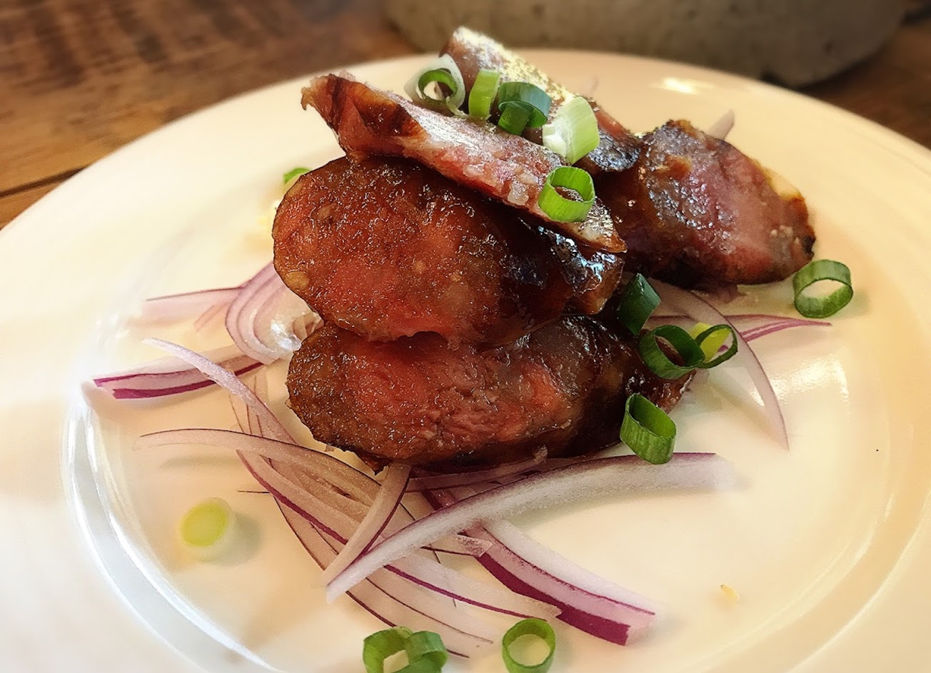 在九份很有名的餐廳,風格獨特,每張桌子和椅子都不太一樣,應該是老闆從各地收藏來的有味道的老道具,有日本食堂的感覺,假日常需等候。餐點單價微微偏高,但是料理調味和擺盤都十分用心,每一道餐點很喜歡,其中香腸的調味很特別,沒有在其他地方嚐過。