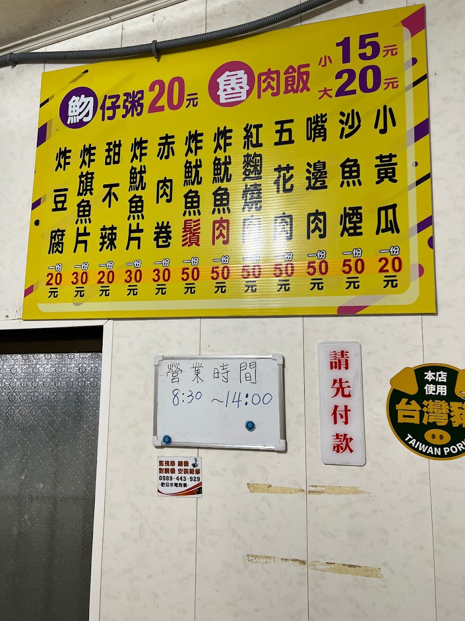 吻仔魚粥味道很好,小菜都好吃:紅糟燒肉、鯊魚煙、肉捲都不錯吃,只有早上才有賣喔!