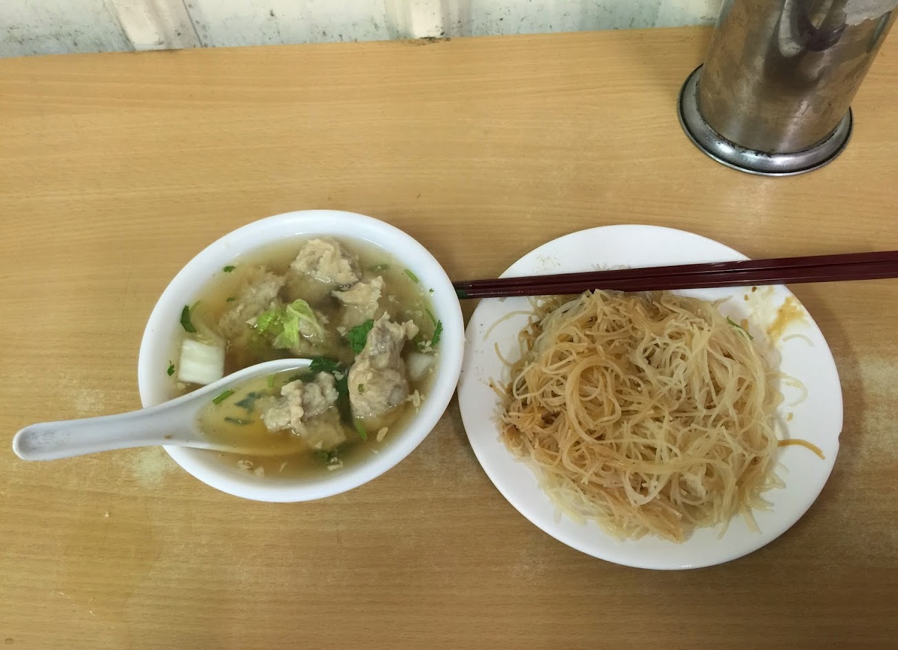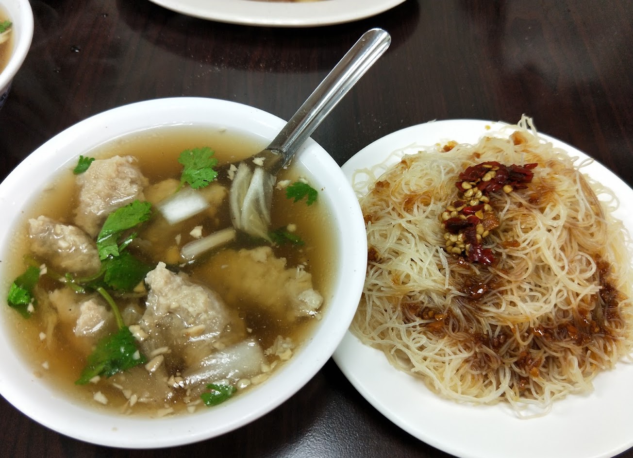 米粉炒簡單但口感佳,赤肉焿讓我想起4、50年前小時候的味道。