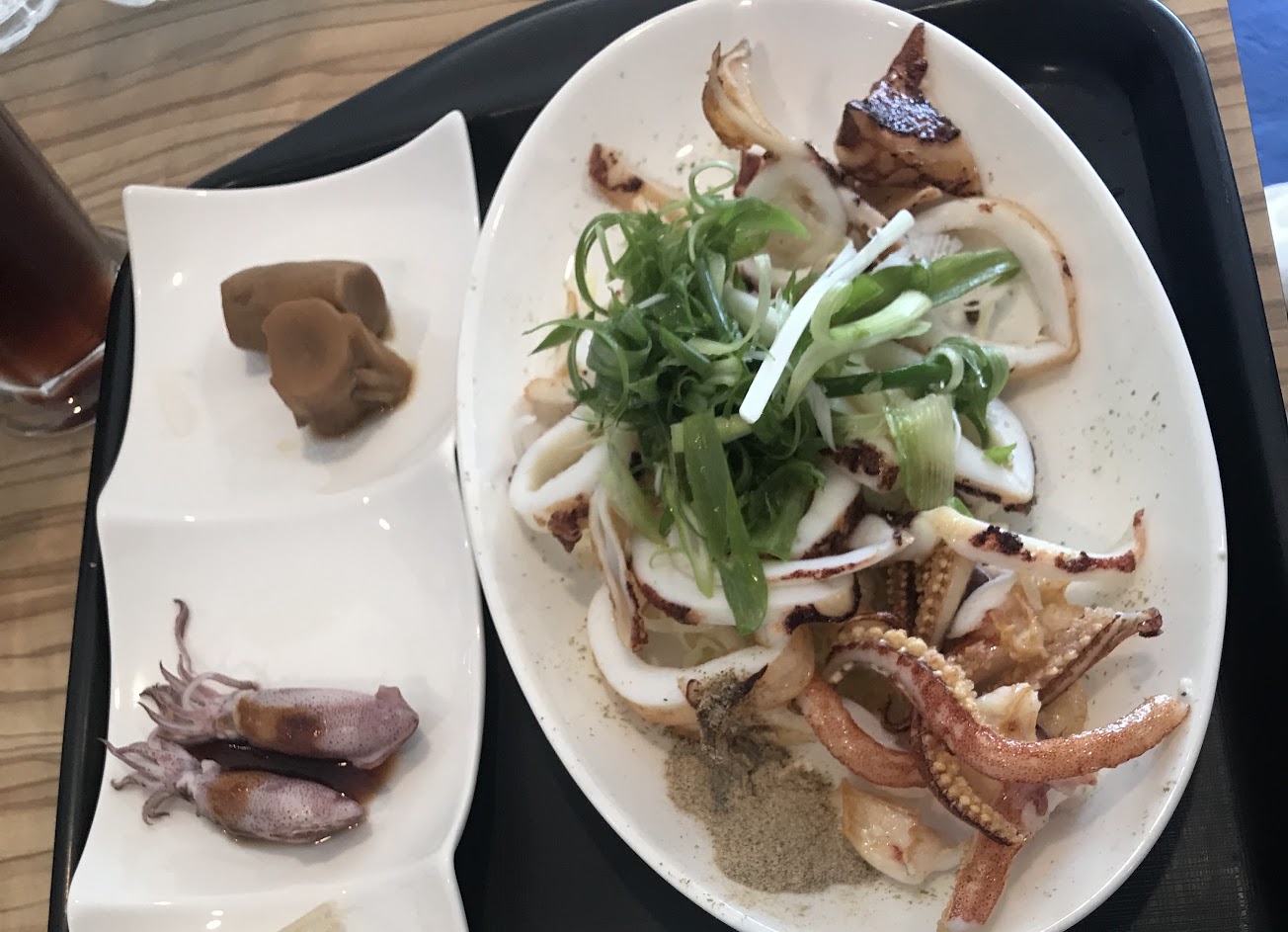 雖然等了一陣子但餐點新鮮美味,尤其是所有海鮮都非常好吃。鎖管盛產的季節,小管特別肥美鮮嫩,絕對值得等待