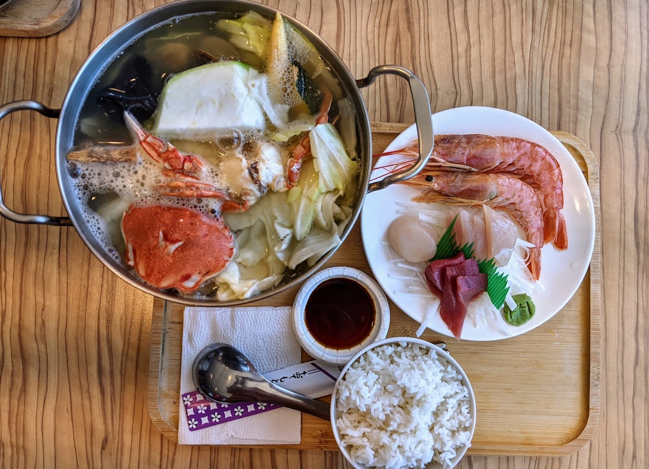 海鮮鍋真的超讚,有螃蟹火鍋跟一盤生魚片,甜蝦超級美味可口!無論生食料理或熟食料理都很好吃,海鮮很新鮮!