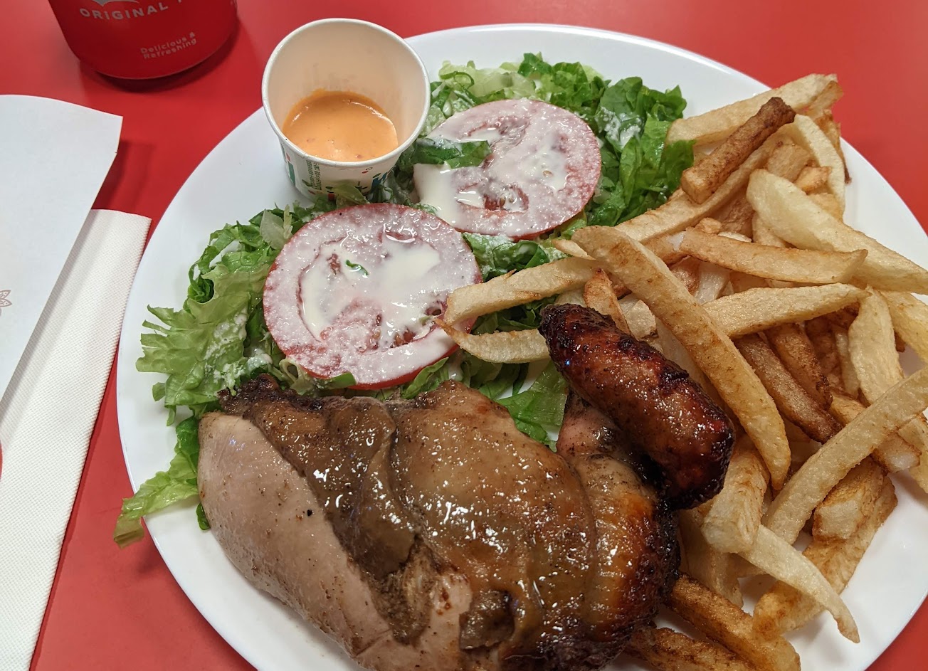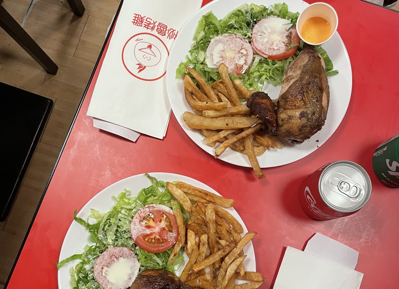 烤雞味道跟台灣不太一樣 味道更濃郁香濃 吃完還想再來一隻 很值得去品嚐 生菜醬像酸奶,搭配起來很入口 薯條就家常點,較軟,但是好吃的。 搭小罐可樂真的剛剛好。 招呼很親切 環境覺得有進步的空間,可能財務考慮,建議擴大空間,雜物分隔開不與客人用餐區混合,整齊環境生意會更好,加油~ 餐點類型 午餐 平均每人消費金額 $200-400 餐點:5 服務:5 氣氛:4