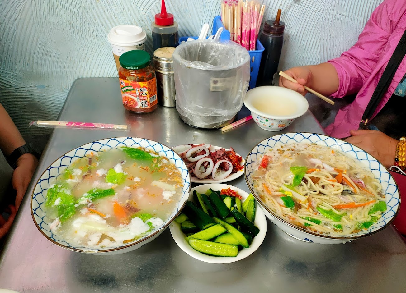看Youtuber介紹的,到時己下午3點多,很多小菜都沒了。點了海鮮麵,海鲜米粉,湯頭满鮮舌甘的,小卷新鮮口感弹牙。没吃到鱼皮凍。